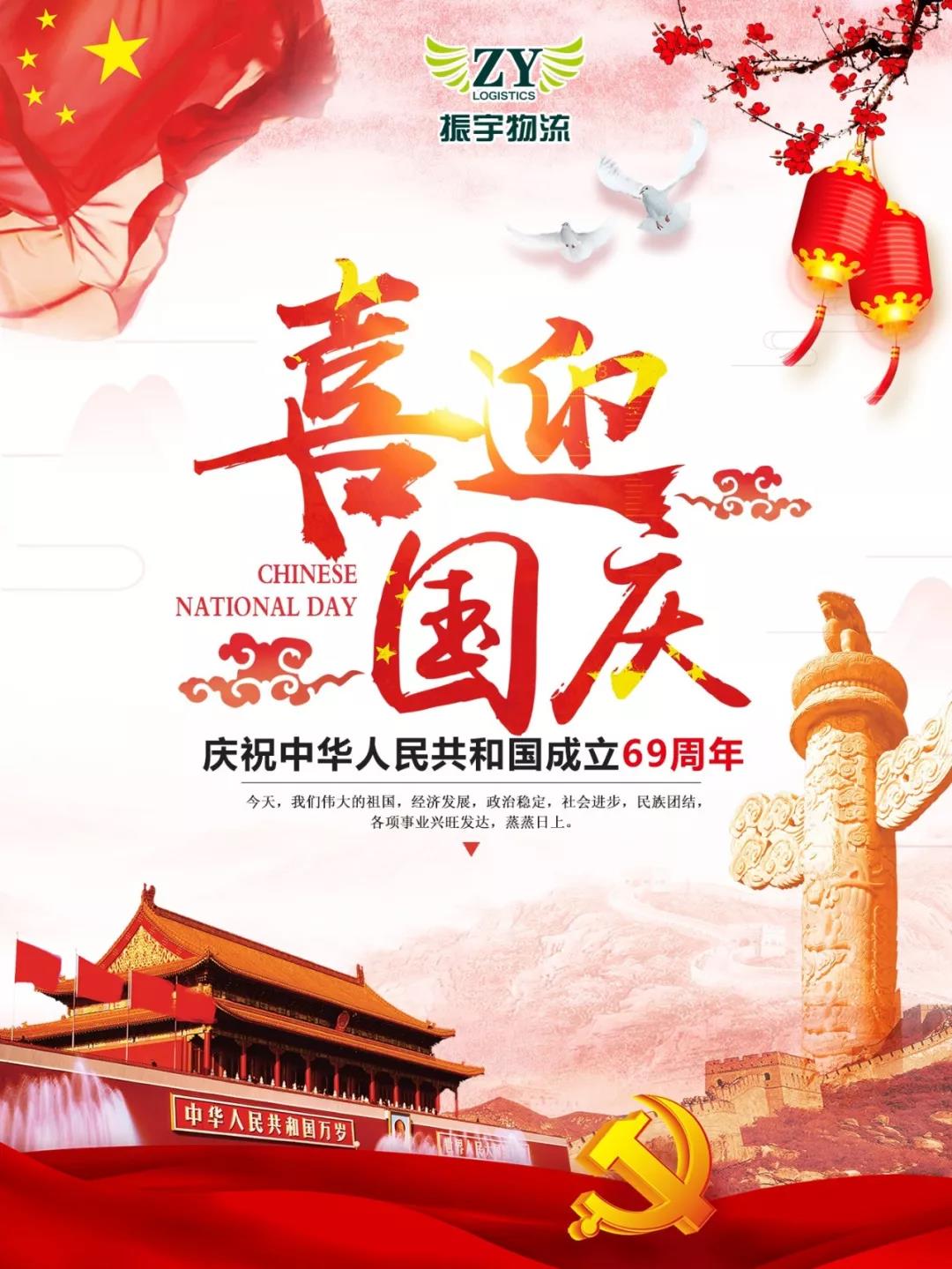 您好!感謝您們多年以來對振宇物流的鼎力支持,在2018國慶節即將來臨之際,振宇物流全體員工祝您國慶快樂!