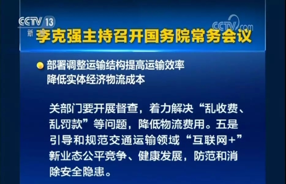 國務院總理李克強6月27日主持召開國務院常務會議,聽取深入推進“互聯網+農業”促進農村一二三產業融合發展情況匯報;部署調整運輸結構提高運輸效率,降低實體經濟物流成本。會議指出,調整運輸結構、提高綜合運輸效率,降低全社會物流成本,對提升實體經濟競爭力至關重要。