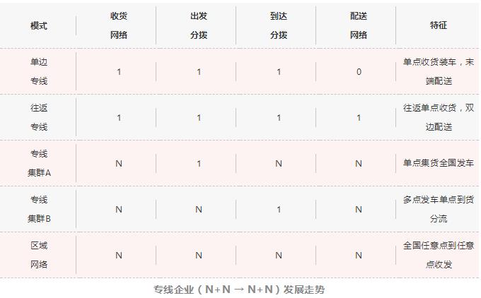這就要求渠道型的專線企業要通過大量“貨”的積累進行價值轉移,轉移到“車輛”這個固定資產的沉淀,當規模更大的時候,就需要考慮到一個區域分撥的“場地”資產的承接轉移,進行價值積累,否則你這個渠道型專線就真的只剩下干苦力了,甚至還掙扎在溫飽線的境地。所以渠道型專線適合將線路做粗,在單點——單點/區域進行多車輛投放,將成本做到極致,將用車效率做到極致。
